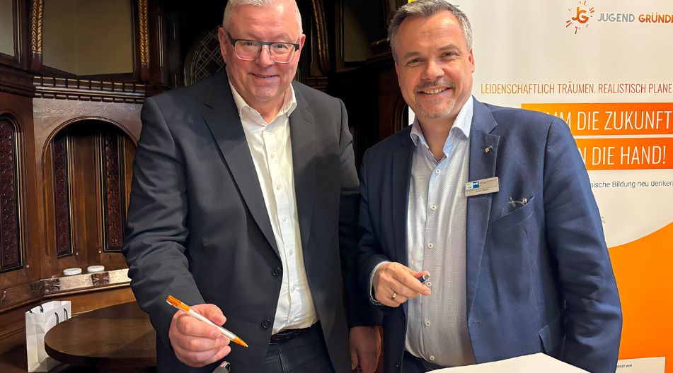Unterschriften mit Signalwirkung: Wirtschaftliches Denken ist bereits im Schulunterricht ist, damit Jugendliche sich für Gründungsideen begeistern. Herzlichen Glückwunsch an alle Teilnehmenden und ein großer Dank an alle unterstützenden Lehrkräfte und an das fördernde Bundesministerium für Bildung, Familie, Senioren, Frauen und Jugend.